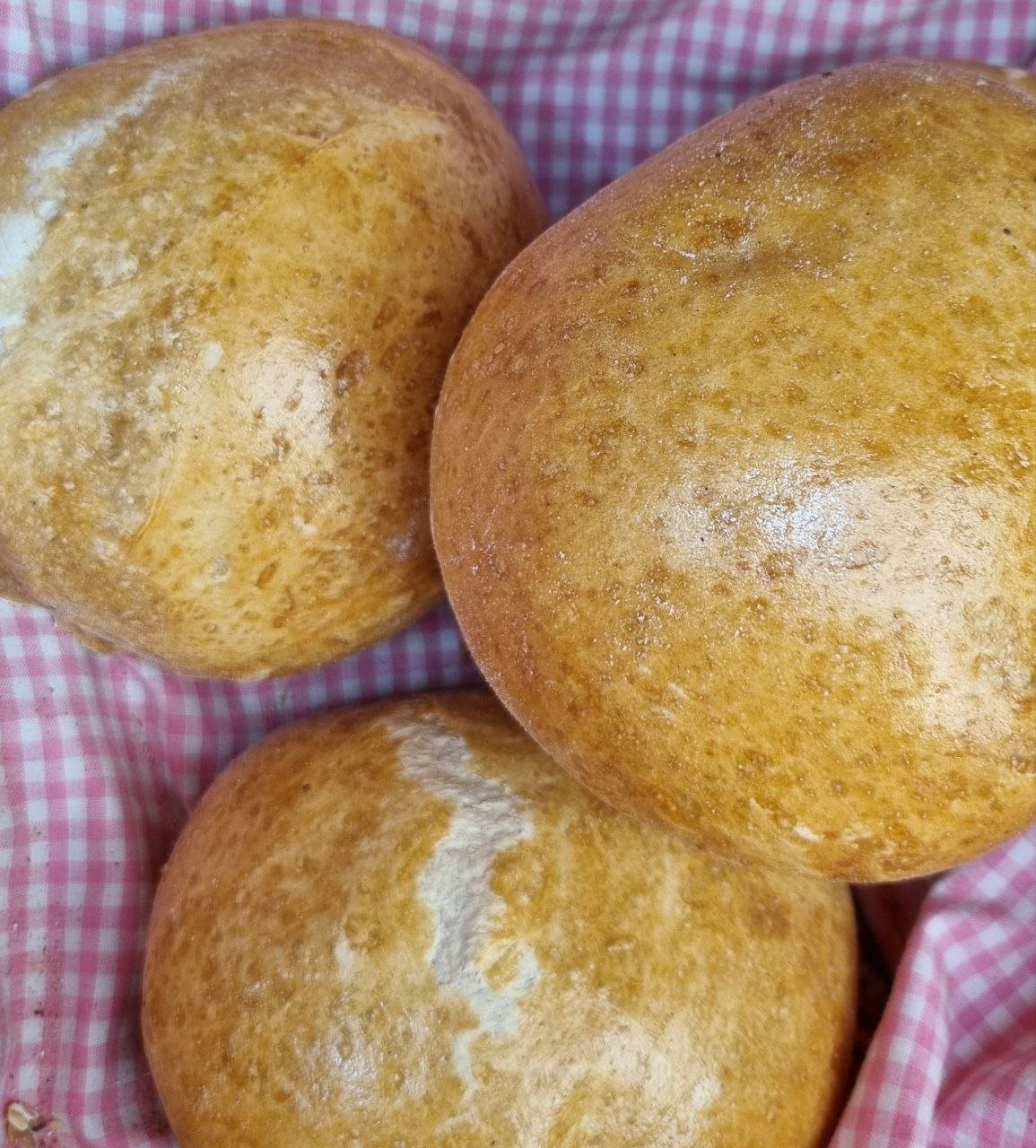 Peso aproximado por panecillo de 80 gramos, dimensiones 12 cm de diámetro por 6 cm altura.